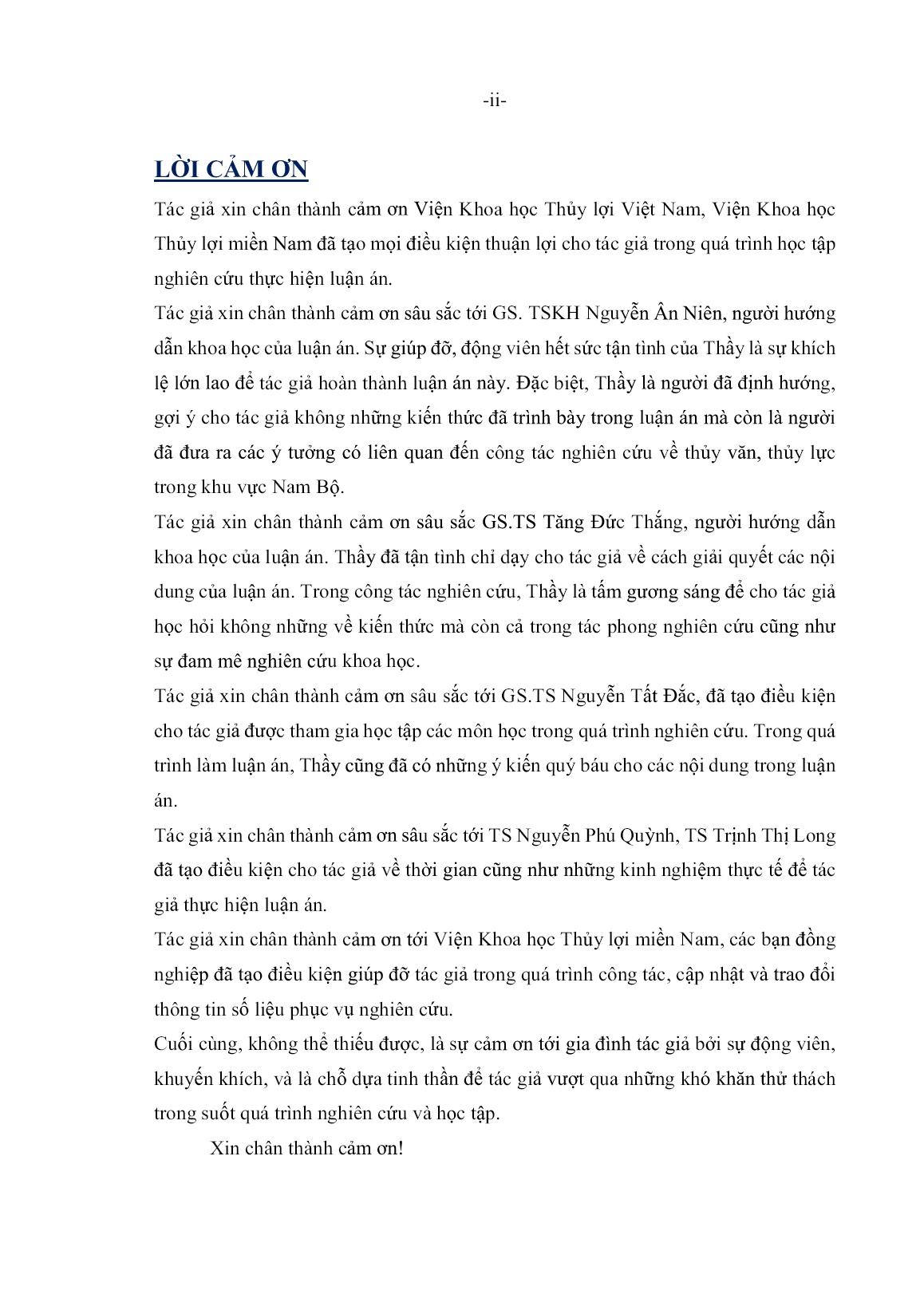 Bạn đang xem 10 trang mẫu của tài liệu "Luận án Nghiên cứu vai trò của bãi triều đến mực nước và lưu lượng sông Sài Gòn - Đồng Nai", để tải tài liệu gốc về máy hãy click vào nút Download ở trên.